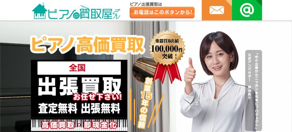 ピアノの買取屋さんは、ピアノ・楽器買取実績100,000件、創業15年の実績と信頼のある出張買取の買取店です。近隣ならば最短30分で出張可能!