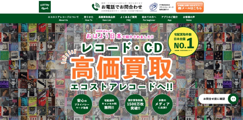 ECOSTORE RECORD(エコストアレコード)は、買取査定歴30年、買取枚数250万枚の実績の専門店です。
